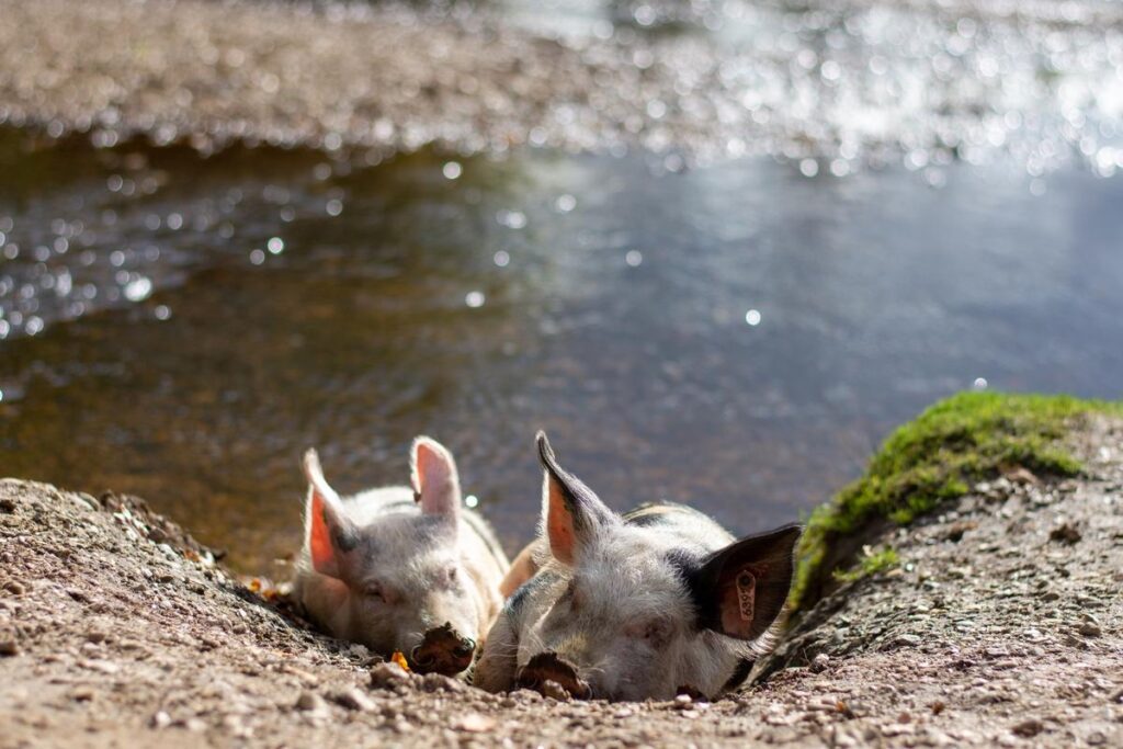 Nicht nur Wildschweine, die in der freien Natur leben, sondern auch Hausschweine suchen bei heißem Wetter nach Möglichkeiten, sich abzukühlen und einen angenehmen Platz zu finden. Daher ist es für Menschen, die Schweine halten, wichtig, ihnen ausreichend Schattenplätze, Wasserstellen und Schlammbecken zur Verfügung zu stellen, um ihren Tieren das benötigte Wohlbefinden zu ermöglichen.